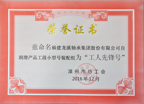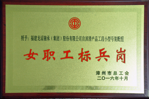 2016年,公司自潤滑產(chǎn)品工段小型號裝配組收獲頗豐,繼獲得公司2015年度“先進(jìn)班組”后,又被漳州市總工會授予漳州市“工人先鋒號”及“女職工標(biāo)兵崗”榮譽(yù)稱號。