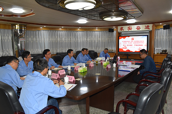 ????2019年11月28日上午,公司黨委書記、董事長曾凡沛在四樓會議室主持“不忘初心、牢記使命”主題教育“學習‘時代楷模’,嚴明紀律規矩”集中研討會和對照黨章黨規找差距專題會議,公司領導及主題教育領導小組辦公室成員參會。市委第七巡回指導組副組長黃毅、成員韓毅龍到會指導。