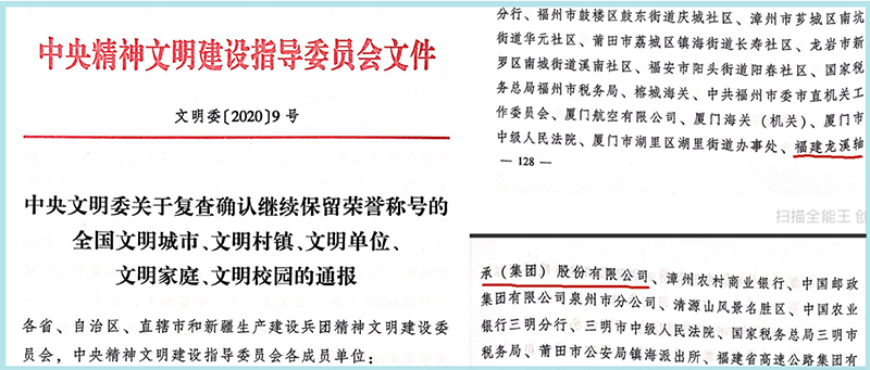 今后,公司將持續(xù)堅持以習(xí)近平新時代中國特色社會主義思想武裝頭腦,深入學(xué)習(xí)貫徹落實黨的十九屆五中全會精神,不斷增強(qiáng)“四個意識”,堅定“四個自信”,做到“兩個維護(hù)”,積極踐行社會主義核心價值觀,牢記初心使命,繼續(xù)鞏固和發(fā)展全國文明單位創(chuàng)建成果,強(qiáng)化文明創(chuàng)建頂層設(shè)計,積極爭創(chuàng)第七屆全國文明單位,為漳州創(chuàng)建全國文明城市、加快推進(jìn)新時代富美新漳州建設(shè),奮力當(dāng)好新時代新福建建設(shè)先鋒、新增長極和重要引擎作出更大貢獻(xiàn)!