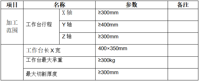 (1)設備功能要求(關注工作臺長X寬為720×450mm以上,最大切割厚度大于400 mm)