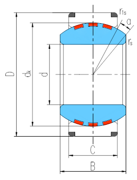 產(chǎn)品特點(diǎn):外圈沿軸向剖分成兩半,用鎖圈固定,外圈材料為軸承鋼,淬火,磷化,球面鍍硬鉻;內(nèi)圈材料為銅合金,球面鑲嵌固體自潤滑材料。