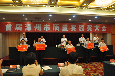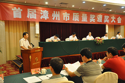 2012年9月28日,漳州市政府在漳州賓館隆重召開首屆漳州市質(zhì)量獎頒獎大會,漳州市質(zhì)量獎評審委員會委員單位、各縣(市、區(qū))政府、各開發(fā)區(qū)分管領(lǐng)導、質(zhì)監(jiān)部門領(lǐng)導及列入《漳州市爭創(chuàng)省、市質(zhì)量獎三年滾動計劃》的企業(yè)代表100多人參加會議,副市長洪仕建出席會議并發(fā)表講話,他充分肯定了漳州市質(zhì)量工作的顯著成效,并對全市質(zhì)量工作提出新要求。
