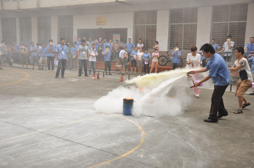 緊接著指揮人員讓參加演練的人員在一樓籃球場(chǎng)集中,闕教官現(xiàn)場(chǎng)講解和演示用干粉滅火器滅火的要領(lǐng),并讓參演人員使用干粉滅火器進(jìn)行現(xiàn)場(chǎng)滅火體驗(yàn)。演練結(jié)束后,環(huán)境與安全管理部人員就本次演練活動(dòng)進(jìn)行了分析和小結(jié)