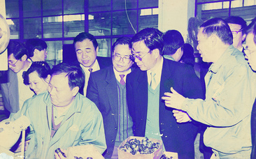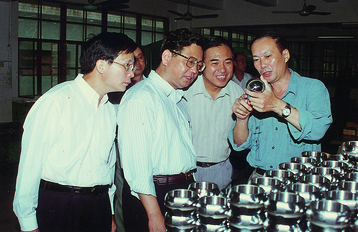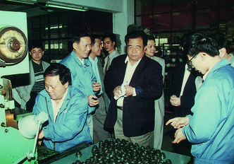 1997年6月6日,陳文釗(時任福建省機(jī)械廳廳長,左二)視察龍軸