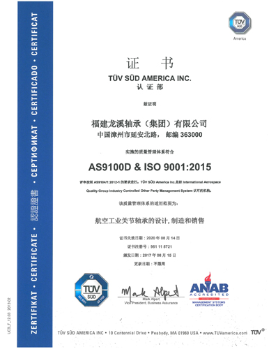 ????依據(jù)AS 9100標(biāo)準(zhǔn)通過(guò)第三方質(zhì)量體系認(rèn)證是作為航空航天供方市場(chǎng)準(zhǔn)入的先決條件之一。自2016年3月15日新版AS 9100D發(fā)布以來(lái),目前全球共有254家通過(guò)新版認(rèn)證,其中中國(guó)僅有5家,公司為首5家企業(yè)之一,且為當(dāng)前國(guó)內(nèi)唯一一家通過(guò)AS 9100D:2016第三方認(rèn)證的軸承企業(yè)。