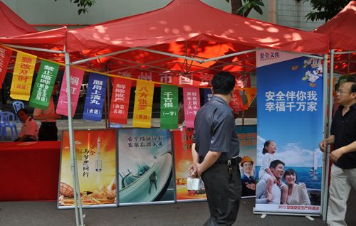按照《漳州市人民政府安全生產委員會辦公室關于做好安全生產宣傳咨詢日活動的通知》精神,6月9日早上,我公司代表國資系統參加漳州市2013年安全生產宣傳咨詢日活動,在市區延安北路繁華路段設置咨詢點,舉行安全生產知識咨詢活動。主要活動內容有:分發安全生產宣傳資料;安全生產知識咨詢;謎語競猜;安全月主題展等。