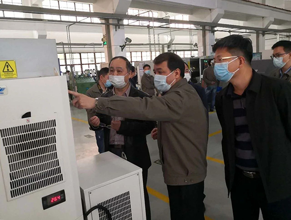 之后在四樓會議室舉行的座談會中,公司黨委書記、董事長曾凡沛與調研組深入交流,詳細介紹了公司生產經營、市場形勢等。黃文龍充分肯定了公司在防疫抗疫和復工復產當中所取得的成效,勉勵公司開足馬力、加快生產,為奪取疫情防控和經濟社會發展雙勝利作貢獻,同時提出幾點要求: