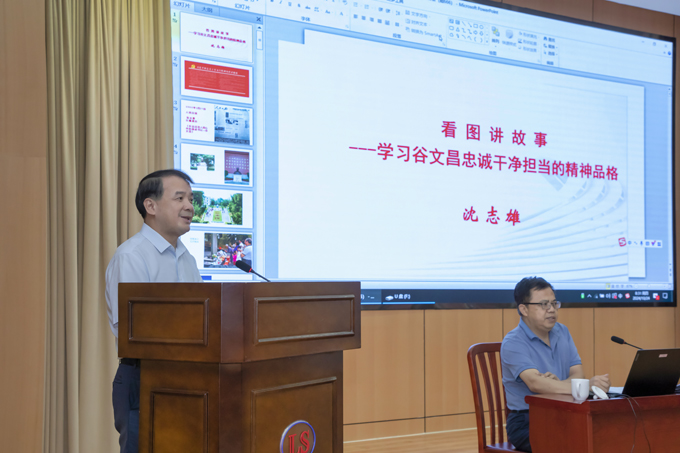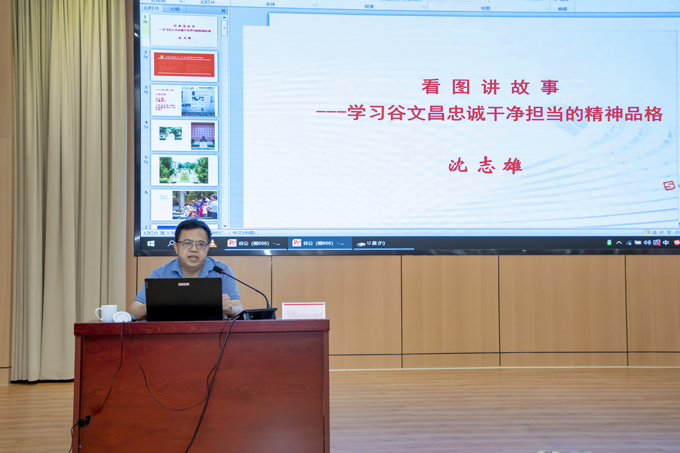 沈志雄老師圍繞“忠誠是谷文昌精神品格最厚重的基石”“干凈是谷文昌精神品格最自然的底色”“擔(dān)當(dāng)是谷文昌精神品格最耀眼的華章”三個(gè)方面系統(tǒng)講述了谷文昌同志生平事跡,通過一幅幅珍貴的影像資料和一個(gè)個(gè)生動(dòng)的事例,大家更全面地理解谷文昌精神品格的內(nèi)涵,受到了深刻的精神洗禮。