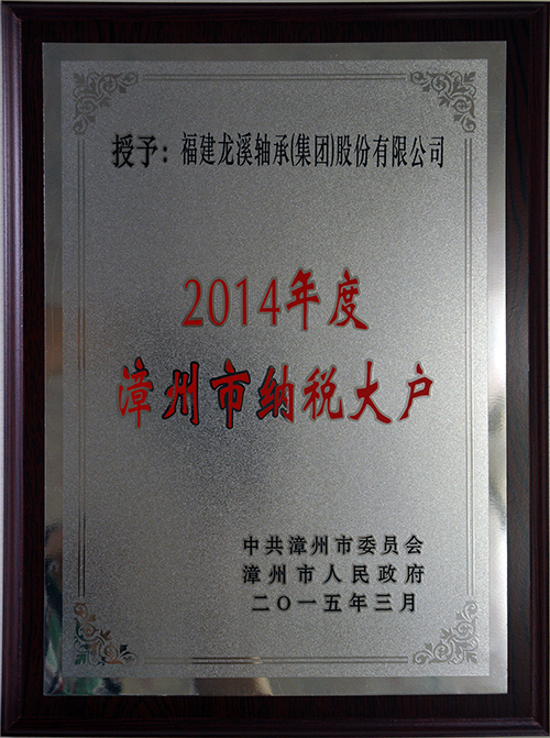 近日,公司再次被漳州市市委、市政府授予了2014年度納稅大戶榮譽稱號。