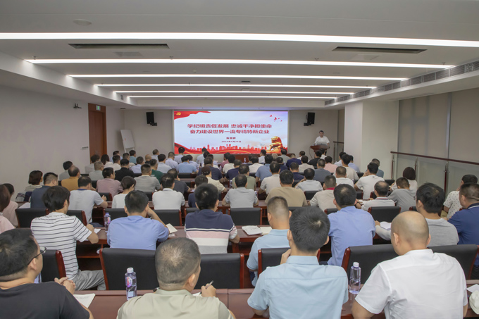 6月26日,集團黨委書記、董事長陳晉輝以《學紀明責促發(fā)展、忠誠干凈擔使命,奮力建設世界一流專精特新企業(yè)》為題講授專題黨課。集團高管、中層管理人員、權屬企業(yè)高管參加。