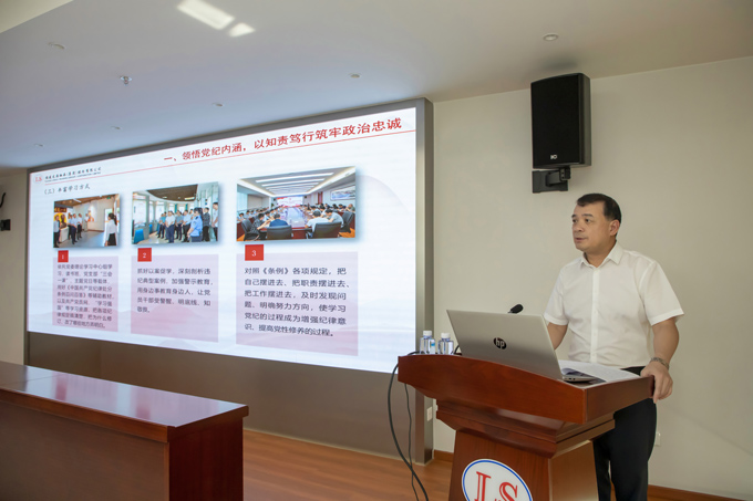 陳晉輝從“領悟黨紀內(nèi)涵,以知責篤行筑牢政治忠誠”“明晰紀律要求,以明責敢為落實主體責任”“涵養(yǎng)清正風氣,以擔責奮進推動公司發(fā)展”等三方面進行了深入闡述。他指出,黨的紀律是黨的各級組織和全體黨員必須遵守的行為規(guī)則,全面深入學習黨的紀律是每一名黨員和領導干部必須完成的政治任務。公司黨員干部要堅持“學”在先、“悟”在深、“踐”在實,真正領會黨的紀律的實質(zhì)和內(nèi)在要求,進一步強化紀律意識、加強自我約束、提高免疫能力,增強政治定力、紀律定力、道德定力、抵腐定力。