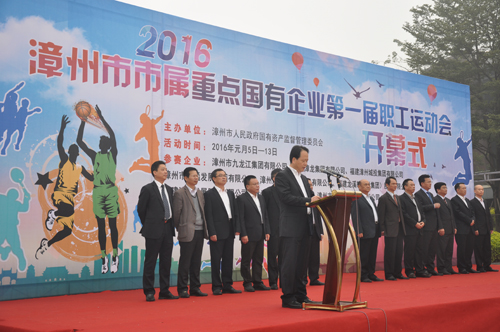 漳州市國資委主任黃建平在開幕式上發(fā)表講話。他指出,本次運動會是漳州市國有企業(yè)廣大職工精神文明風采的一次檢閱,對發(fā)動全市廣大國有企業(yè)職工凝心聚力,把“更高、更快、更強”的體育精神融入實際工作及踐行“漳州發(fā)展、國資有為”必將起到很好的推動作用。