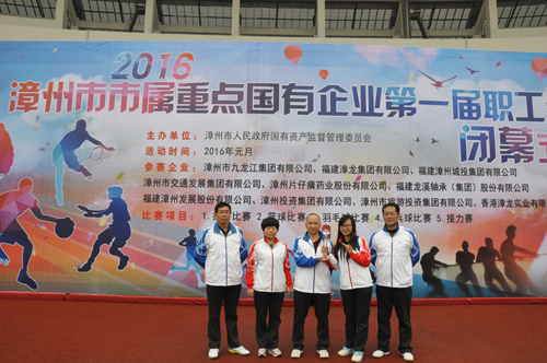 2016年1月5~16日,漳州市國資委主辦的市屬重點國有企業(yè)第一屆職工運動會如期舉行。公司精心選拔52名運動員參加拔河、羽毛球團體、乒乓球團體、籃球四個項目比賽。經(jīng)過12天的奮勇拼搏,公司羽毛球隊榮獲羽毛球團體賽亞軍,撥河隊、乒乓球隊、籃球隊獲得鼓勵獎。