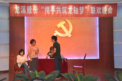 2013年9月30日晚,為慶祝建國64周年,公司黨委、工會(huì)、共青團(tuán)在俱樂部一樓舉行“攜手共筑‘龍軸夢(mèng)’”聯(lián)歡晚會(huì)。