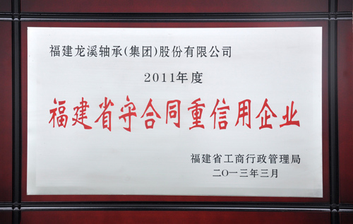 近日,公司在福建省工商局2011年度福建省守合同重信用企業創建活動中獲得“福建省守合同重信用企業”榮譽稱號。