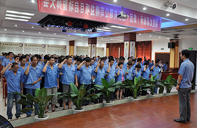 會(huì)上,陳晉輝常務(wù)副總首先宣布了《關(guān)于啟動(dòng)精益項(xiàng)目管理的通知》,對(duì)項(xiàng)目范圍、目標(biāo)、組織架構(gòu)、項(xiàng)目小組人員和參與精益推進(jìn)的相關(guān)各部門人員的職責(zé)做出明確規(guī)定,確保公司精益項(xiàng)目實(shí)施工作能夠按《精益項(xiàng)目計(jì)劃書(一期)》計(jì)劃內(nèi)容順利進(jìn)行,在2014上半年實(shí)現(xiàn)系統(tǒng)提績(jī)達(dá)標(biāo)。企管部施毅群部長(zhǎng)隨即就精益項(xiàng)目主體實(shí)施計(jì)劃與推進(jìn)管理考核制度要點(diǎn)做了簡(jiǎn)要講解。車間主管張高德、班組長(zhǎng)張步斌分別代表公司中層主管和班組長(zhǎng)發(fā)言,并帶領(lǐng)大家向公司董事長(zhǎng)曾凡沛進(jìn)行莊嚴(yán)的集體宣誓。協(xié)力中興董事長(zhǎng)邱模榮也代表咨詢公司在會(huì)上發(fā)表了服務(wù)承諾。會(huì)議過(guò)程緊湊、氣氛莊嚴(yán)而又熱烈。