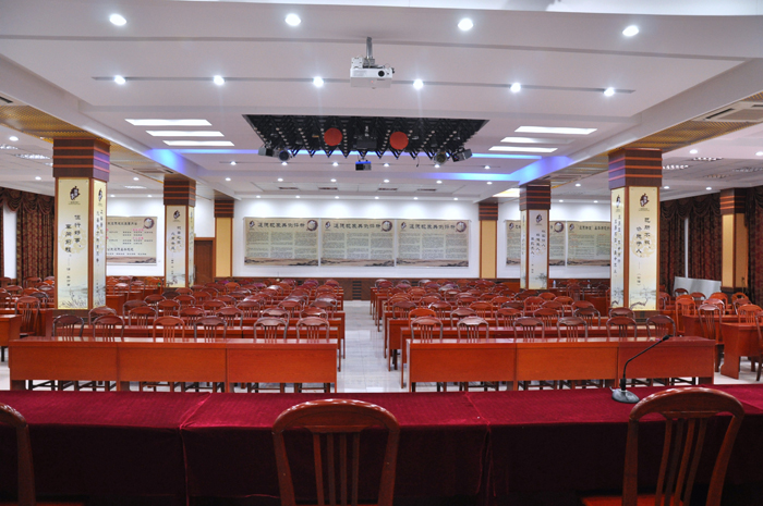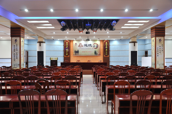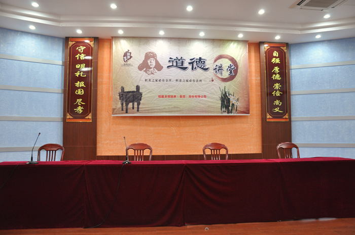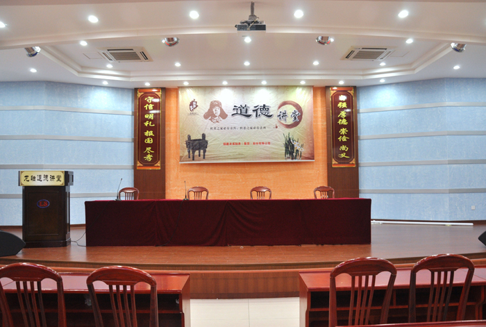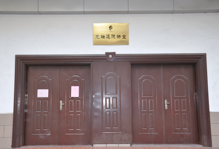 圖2:龍軸道德講堂概貌,前視,講臺背景為市文明委統一設計