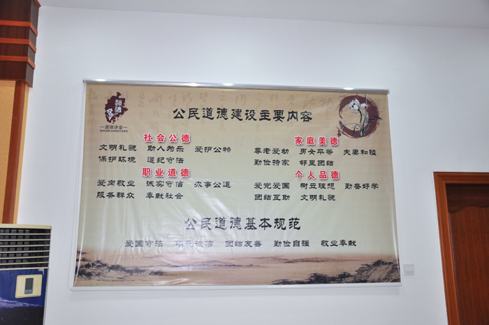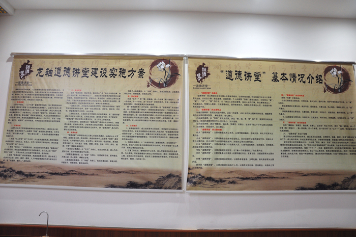 圖9:龍軸道德講堂左后方,(懸掛公民道德建設主要內容及公民道德基本規范一幅