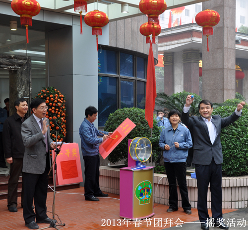 2月6日上午,一年一度具有龍軸特色的“春節(jié)團(tuán)拜會(huì)”在公司總部召開(kāi),公司高管及2000多名在職、離退休員工相聚一堂,共慶佳節(jié)。會(huì)上,公司黨委書(shū)記、董事長(zhǎng)曾凡沛代表公司黨委、總部發(fā)表新春致辭,員工代表張高德也代表全體員工做了發(fā)言。抽獎(jiǎng)活動(dòng)總是團(tuán)拜的壓軸好戲,大家的情緒隨著搖獎(jiǎng)機(jī)歡快的“噼里啪啦”聲高漲起來(lái),每搖出一個(gè)號(hào),就引來(lái)歡呼聲一片,現(xiàn)場(chǎng)熱鬧非凡!
